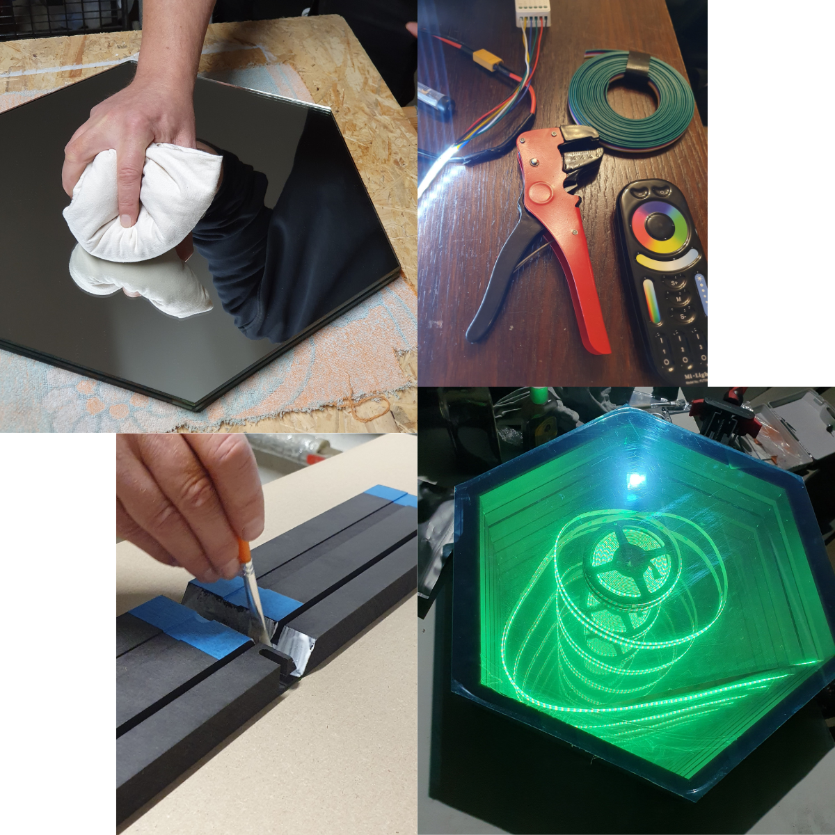 Ein Infinitymirror ist ein dekorativer Spiegel, der durch eine spezielle Anordnung von LED-Lichtern und reflektierenden Oberflächen einen faszinierenden unendlichen Tiefeneffekt erzeugt. Perfekt für moderne Wohnräume und als besonderes Highlight in jedem Raum.